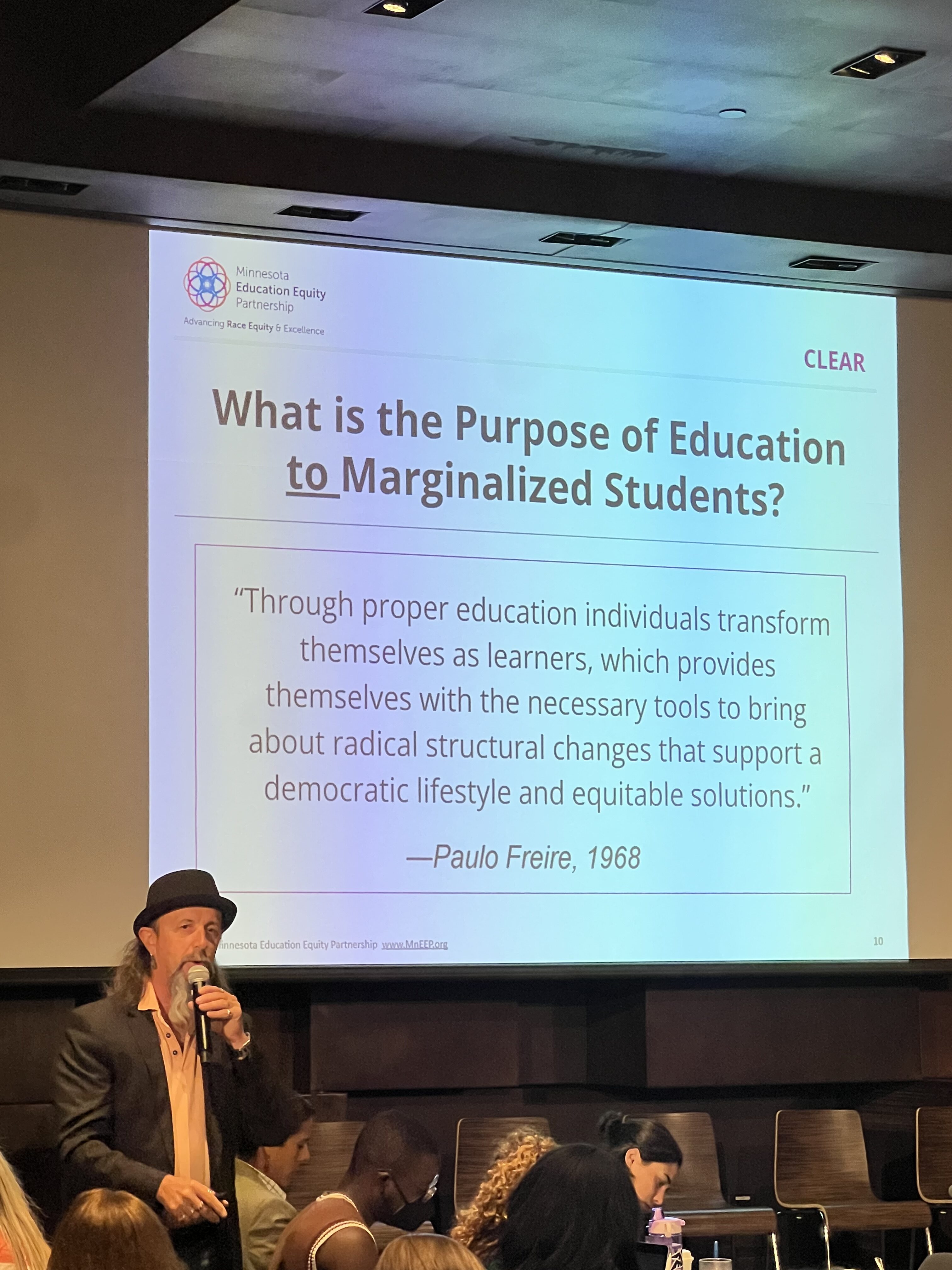 “What is the purpose of education?” Dr. Hillstrom asked the room of 125 attendees. “What is the purpose of education to marginalized students?” he posed.
