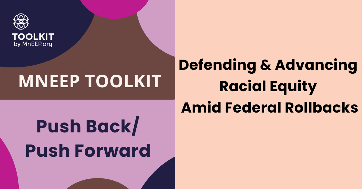 MnEEP’s Push Back/Push Forward Toolkit is a collaborative, living resource designed to equip and empower educators, leaders, and advocates with the legal frameworks, strategies, and narratives needed to center student rights and advance racial equity amid federal threats to public education and student belonging.